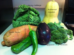 Baseball carries on, but lucky me, I got the night off!  My husband cooked tonight!  He made a delicious stir fry with tofu, red pepper, and mushrooms from the store, and savoy cabbage, broccoli, and peppers from our CSA share this week.  And it was awesome.  It tasted awesome, and it was awesome to get to sit on the couch while he cooked and I watched Netflix.  And then I did the awesome dishes.