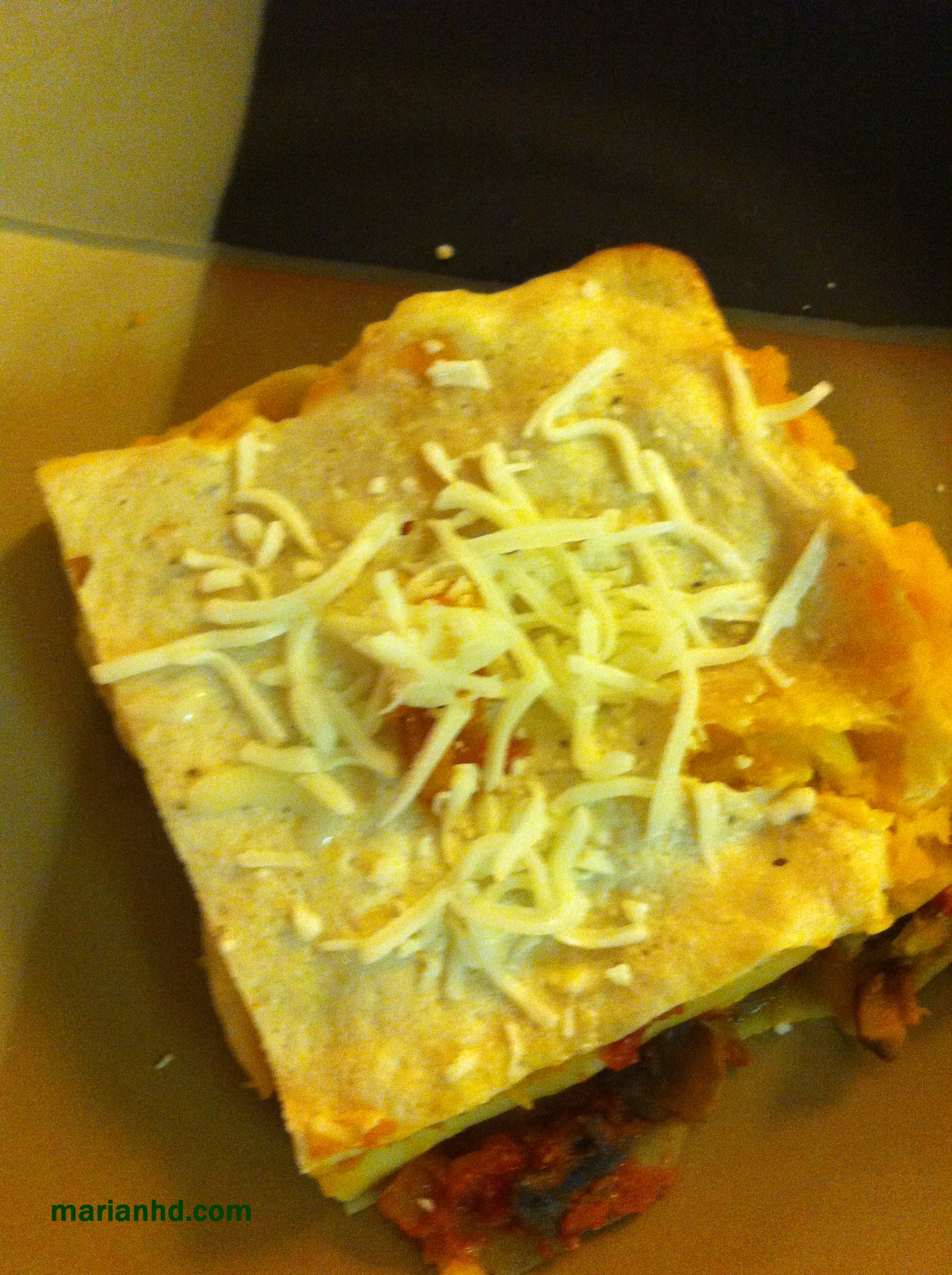 Off I went, then, to search the wild interwebs for a butternut squash lasagna recipe that didn’t need dairy! I dodged the vegetarian recipes that the Google returned on my vegan query and wondered if I should have Binged it. But I persevered and settled on a vegan butternut squash lasagna recipe from Livestrong, of all places. (I am refraining from all kinds of comments here. Please appreciate all my effort.)