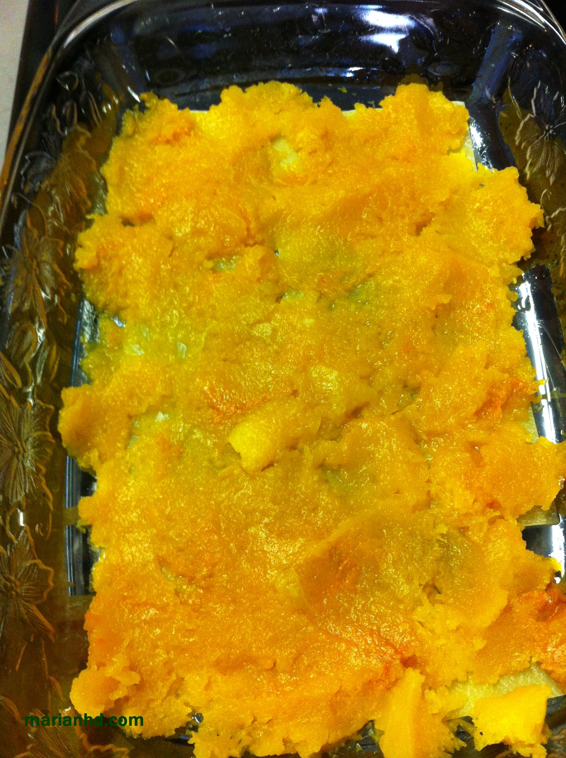 2. Create the squash filling by roasting your squash and mashing it into a spreadable form. I like to leave a few chunks in mine so I know that it’s still squash. I also recommend that you do this step in advance to save you some time assembling.