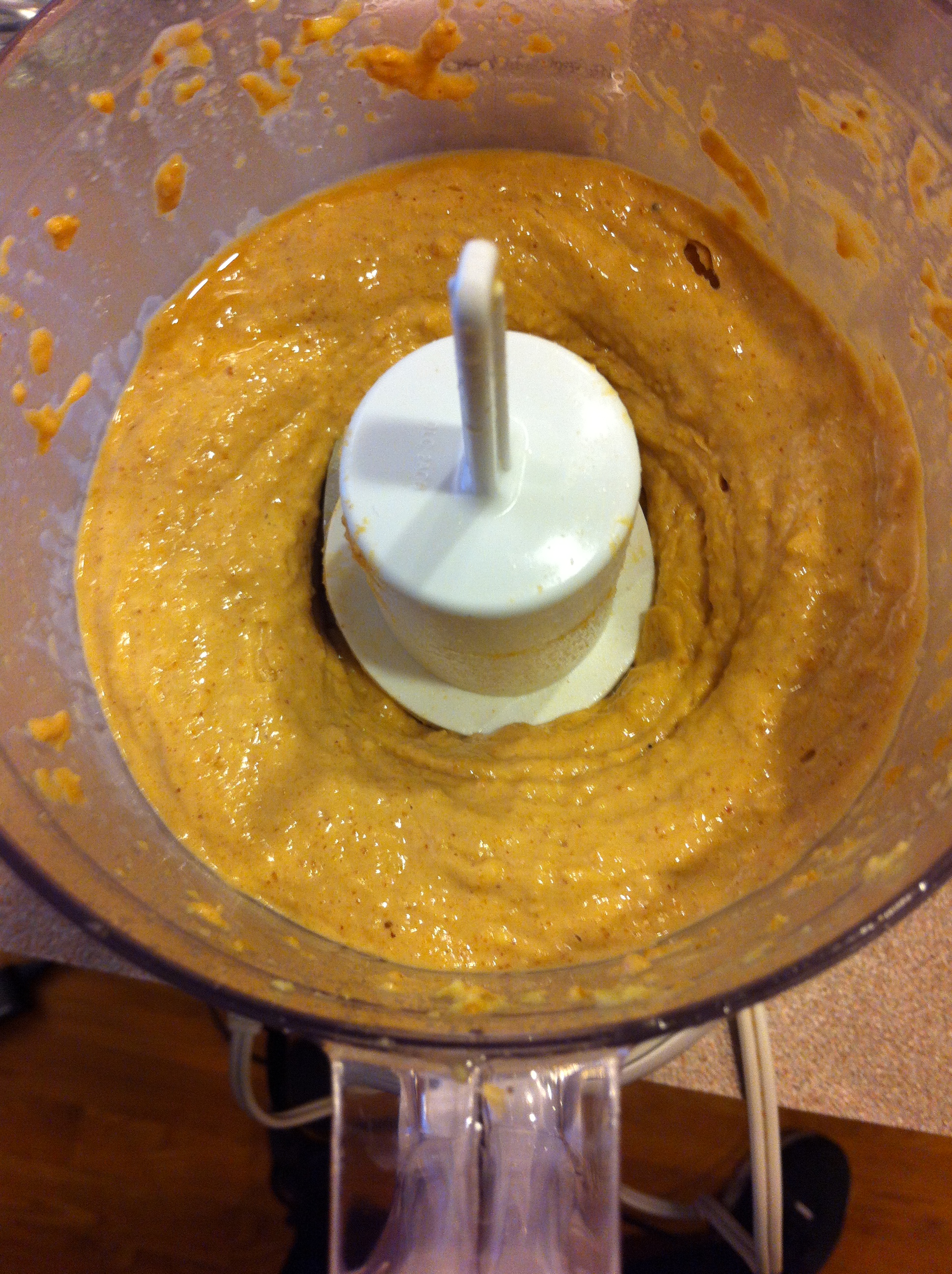 4. Mince the ginger (I used a mini food processor). Whisk or process together the ginger, peanut butter, lime juice, water, tamari, and sugar.