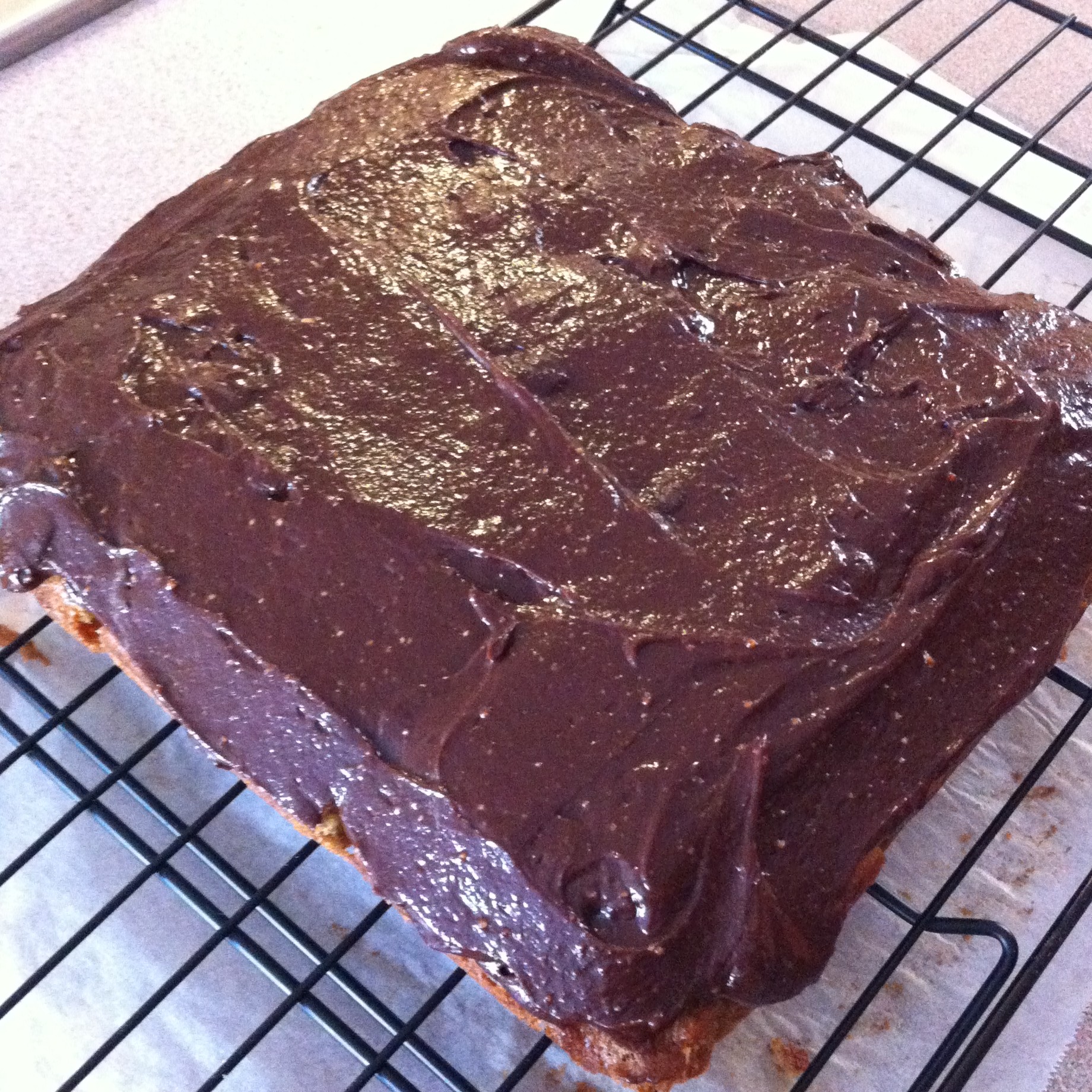 I researched several other blondie recipes and used Smitten Kitchen‘s recipe as a starting point for my next attempt. This proved to be the winner. With just a couple adjustments, this blondie plus the ganache from the other website is a gem. The husband agrees, this gives us the proper blondie texture to bear the thick weight of the ganache.