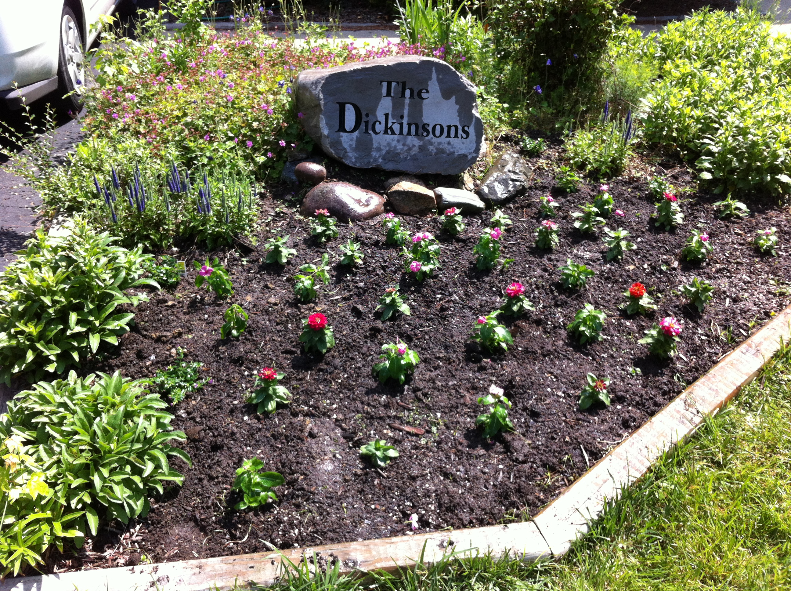 2. This being our first full spring and summer in our new home, the husband and I are taking our landscaping responsibilities far more seriously this year. This means I have been weeding flower beds, we built a garden (which includes raised beds and deer fencing), I’ve planted the garden, annuals, mosquito pots, and we mulched all around the house. The house looks prettier, and hopefully the garden will provide some very local and very tasty treats! (The big rock doesn’t usually look so creepy, it’s only because I had just watered the flowers).