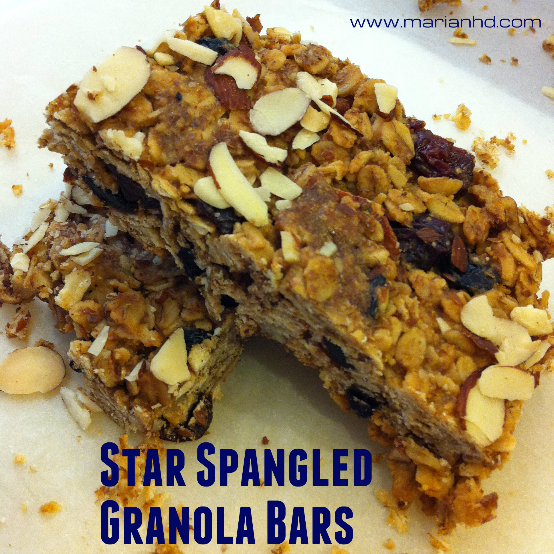 Since we were visiting family for the 4th of July, I wanted to get creative and do something sorta themed. I debated between red, white, and blue muffins, or red, white, and blue granola bars. I was a little leery of attempting my vision of fresh strawberries and blueberries in muffins, so I opted to try out the granola bars instead. Granola bars obviously call for dried fruit, and that sounded easier.
