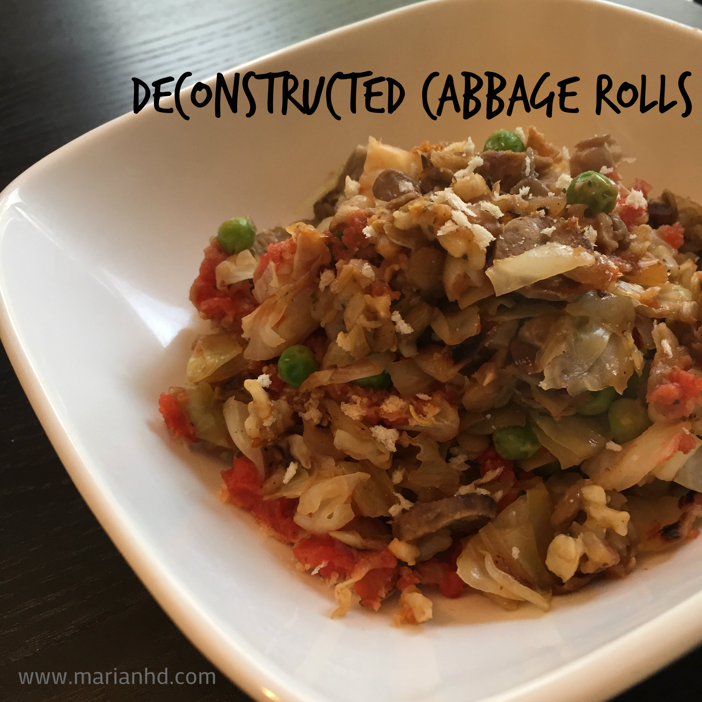 In my need to use a two-week old head of cabbage, I checked Good and Cheap’s index and found the recipe for Deconstructed Cabbage Rolls. I had almost all the ingredients on hand, it didn’t look hard, and it sounded like something the husband would really like. So I went for it, and added my own flair, based on Brown’s suggestions.