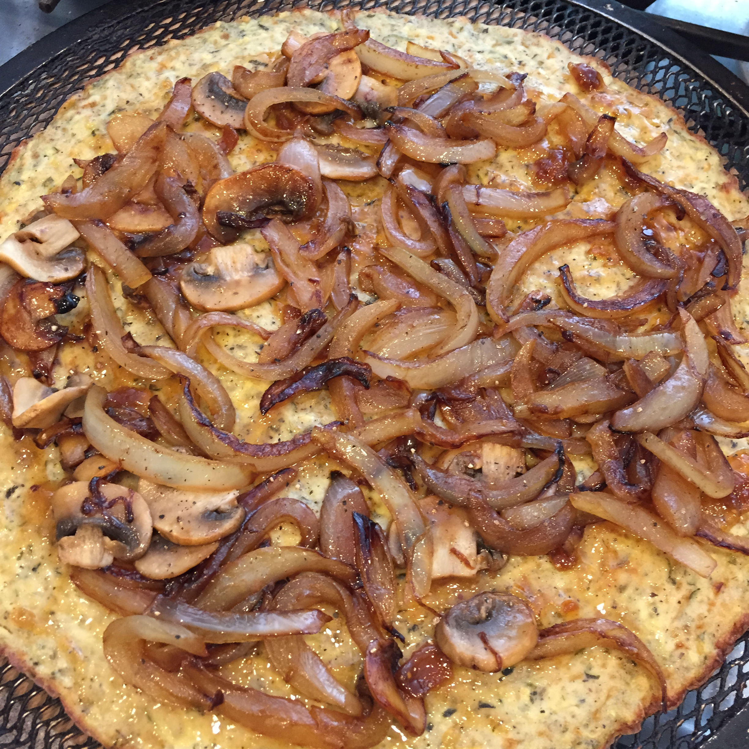 Caramelized Onion, Mushroom and Spinach Pizza